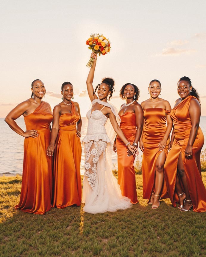 My dress arrived and I'm really happy with it. The fabric feels high-quality, and it looks exactly like the photo online. The only thing is it runs a little big, so I had to get it tailored. All in all, a good buy.