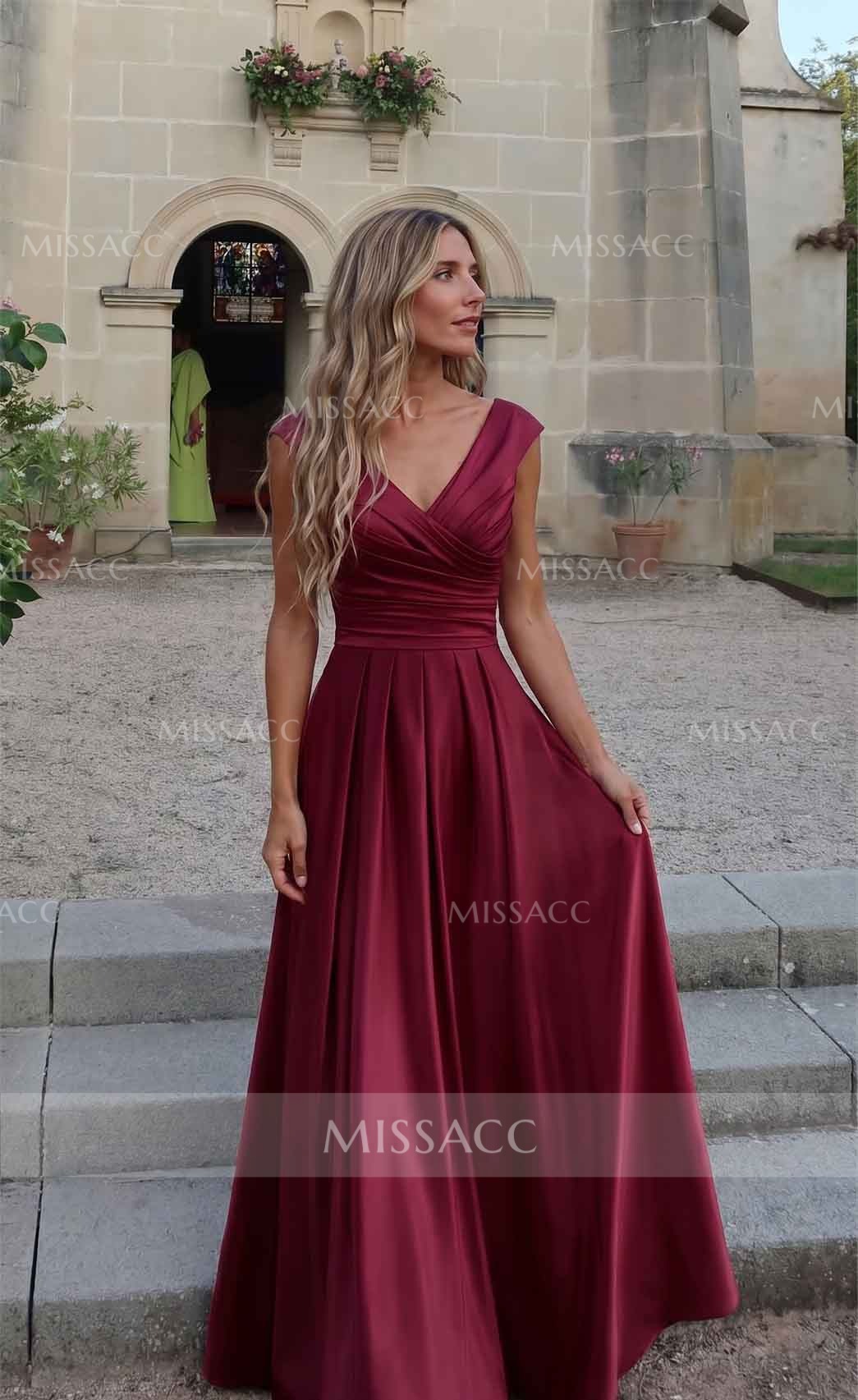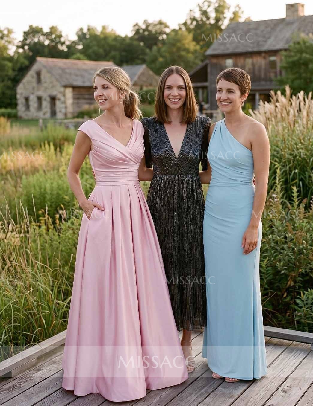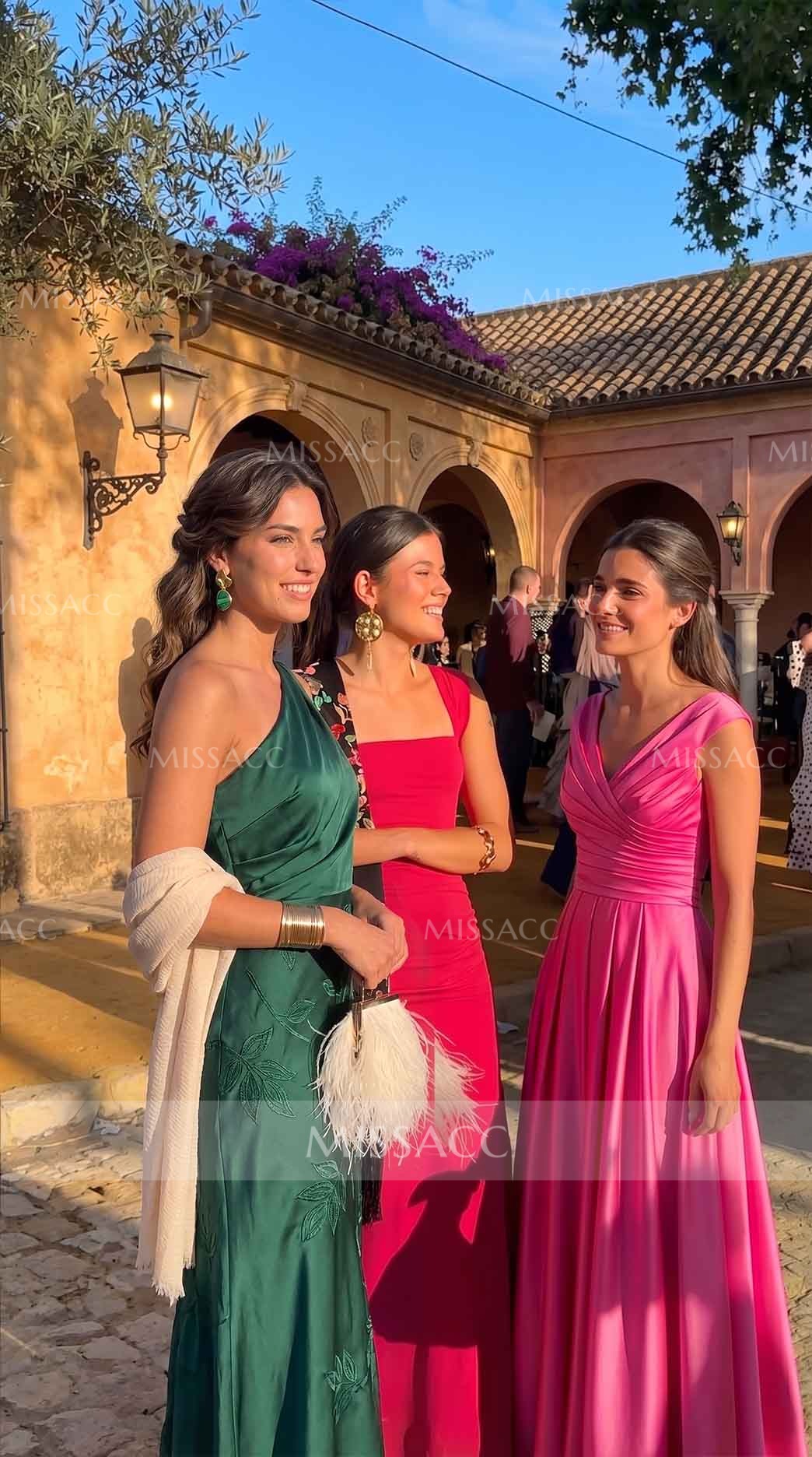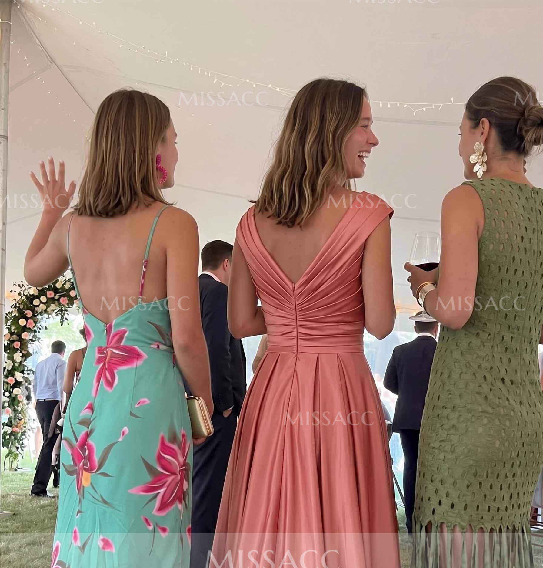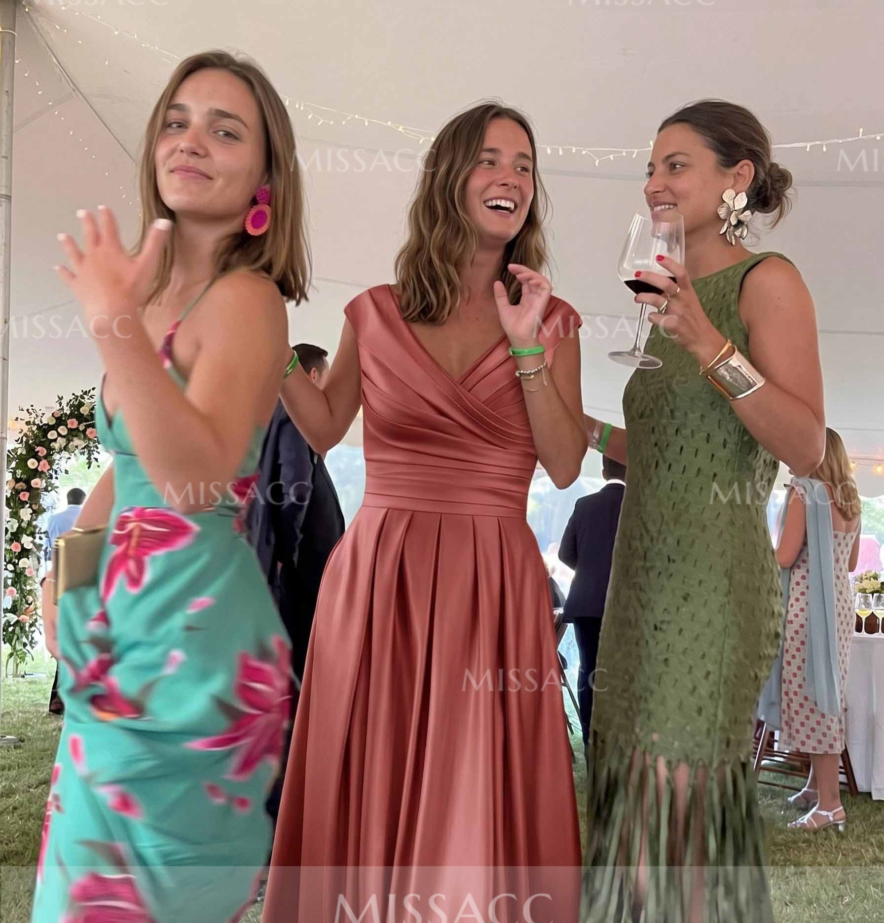 I wore this to a friend's wedding and got so many compliments! The V-neck is perfect—not too low or revealing—and the fabric has a gorgeous shimmer to it. It flows beautifully when you walk or dance. Plus, it looks amazing in group photos with the girls!