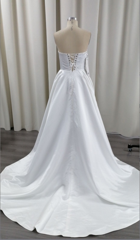 My now-husband and I decided to tie the knot within a few months, so finding the perfect dress was definitely a stressful part of the process. But then I found this dress, and I took a chance on it, and I am SO incredibly happy I did! I'm genuinely shocked by how well-made it is and the quality of the material! I'm not kidding, I'm notoriously picky, and this dress was absolutely perfect! We did make a very minor alteration, trimming about 6-7 inches off the front hem and then using the off-cut to enhance the bust area. I was completely in love with my dress! It's also surprisingly lightweight, which was a welcome surprise because it meant I was comfortable all day long!!! I'm so thrilled I took that risk! When it came to sizing, I took all my own measurements and then chose the size that best matched the chart. The customer service was fantastic! I explained my tight timeline, and they responded quickly, offering really helpful and caring support! I can't upload a photo, but I promise – this dress is incredibly flattering. I'm a larger lady (5'4", UK size 18-20, and I ended up needing a size 24), but this dress was slimming, held me in perfectly, and I had no worries about sitting down in it. And finally, if you're looking for that perfect swish, this is it! 💛