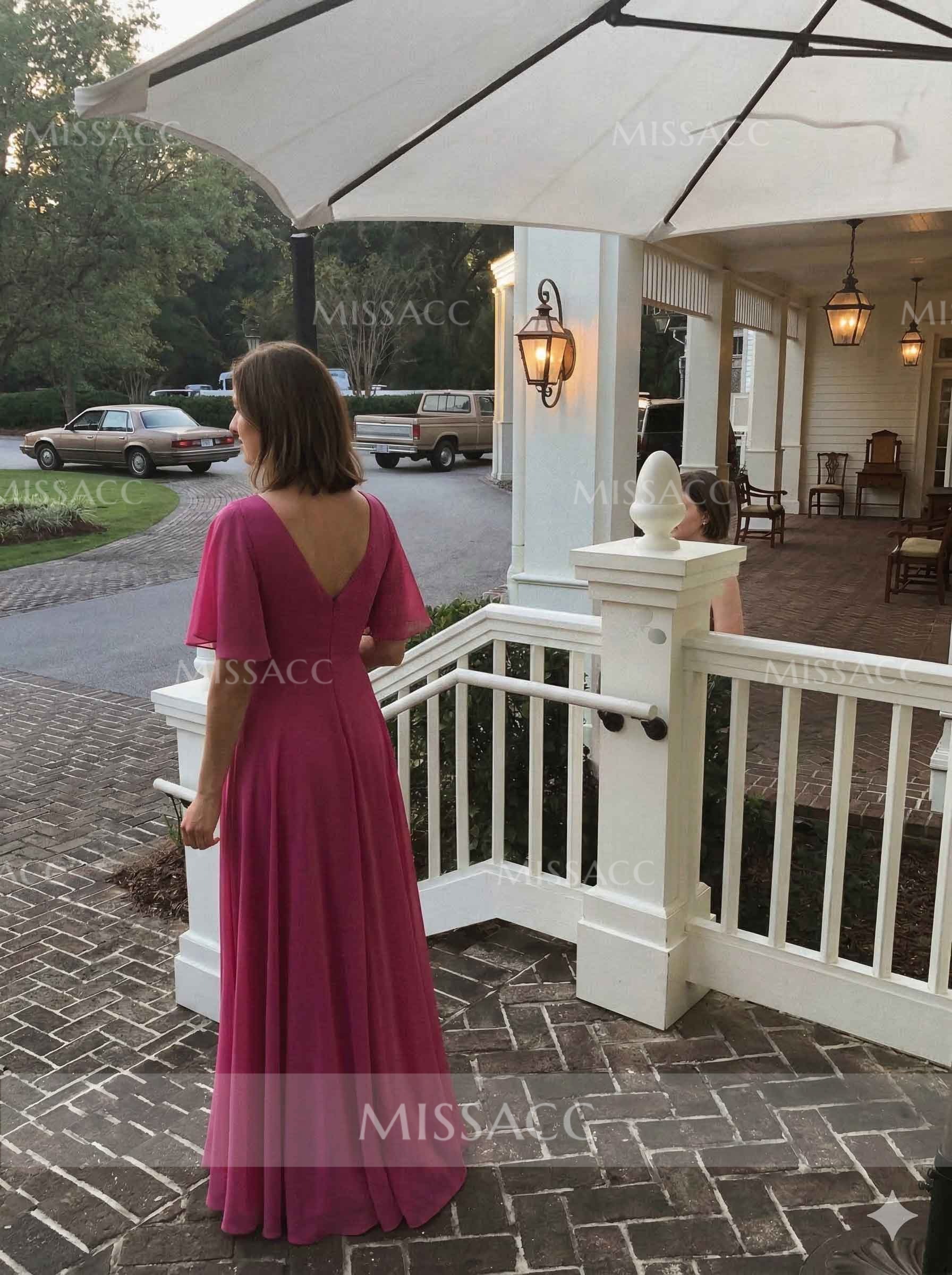 Another friend and I wore this bridesmaid dress to my friend's wedding. and it was honestly perfect. The chiffon material felt so light and the slit made it super easy to walk. I was a bit worried about the half sleeves being too hot, but they were actually really breathable. Got tons of compliments all day!