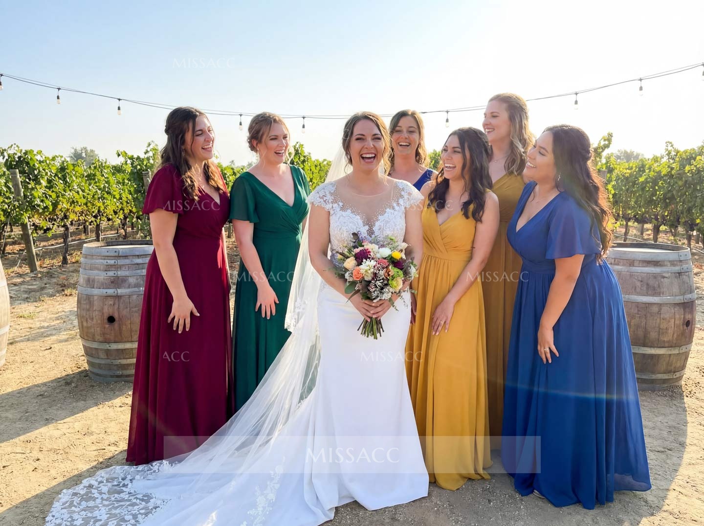 Missacc replied: Hey there! Here are some real-life shots of the dresses from our workshop. Feel free to use them as a guide!