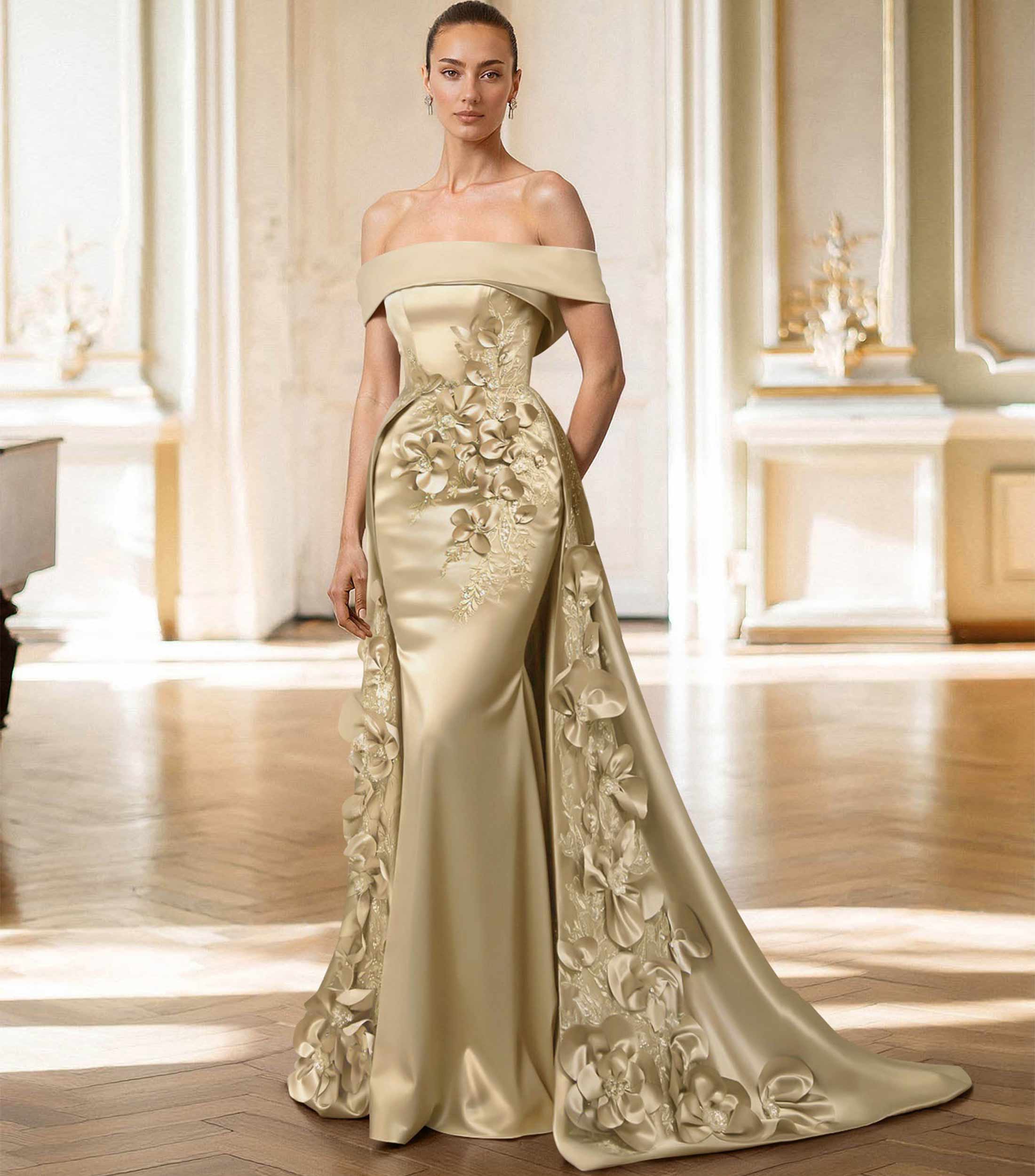 Elegant sheath column dress in satin with a split front, perfect for proms and special occasions. Sleek, figure-flattering design in luxurious silk-like fabric.