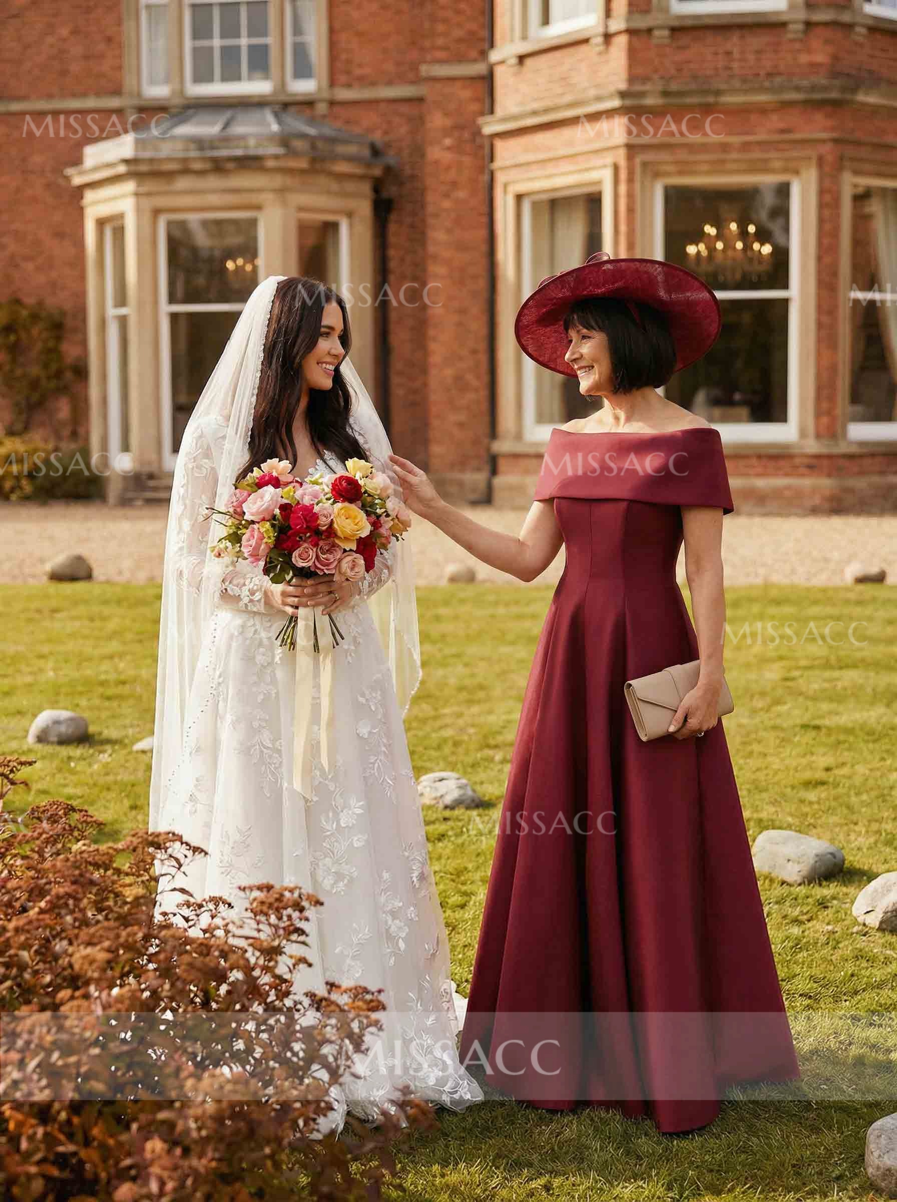 Sheath column mother of the bride dress with lace and chiffon, off-the-shoulder design for a graceful look. Perfect for weddings and formal events.