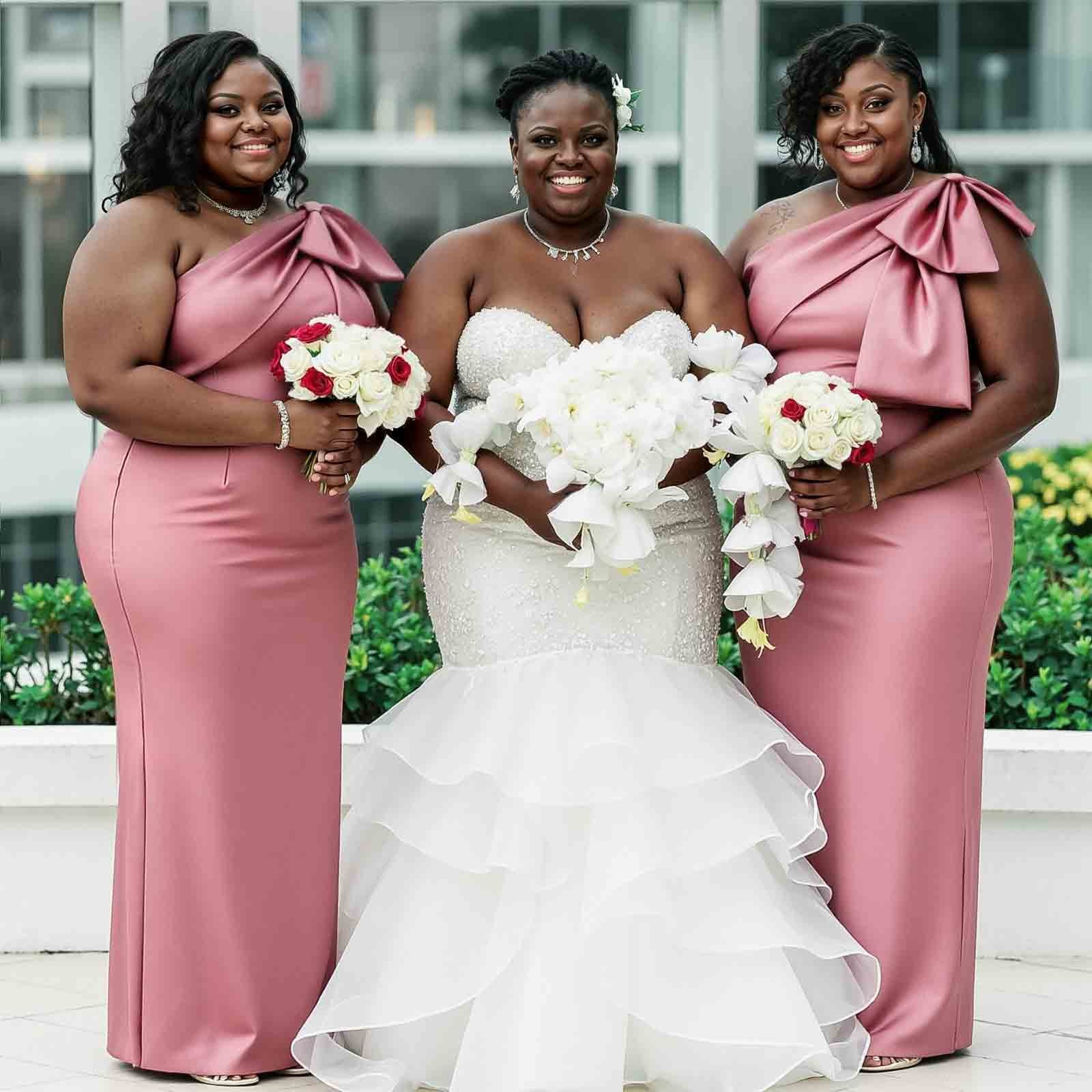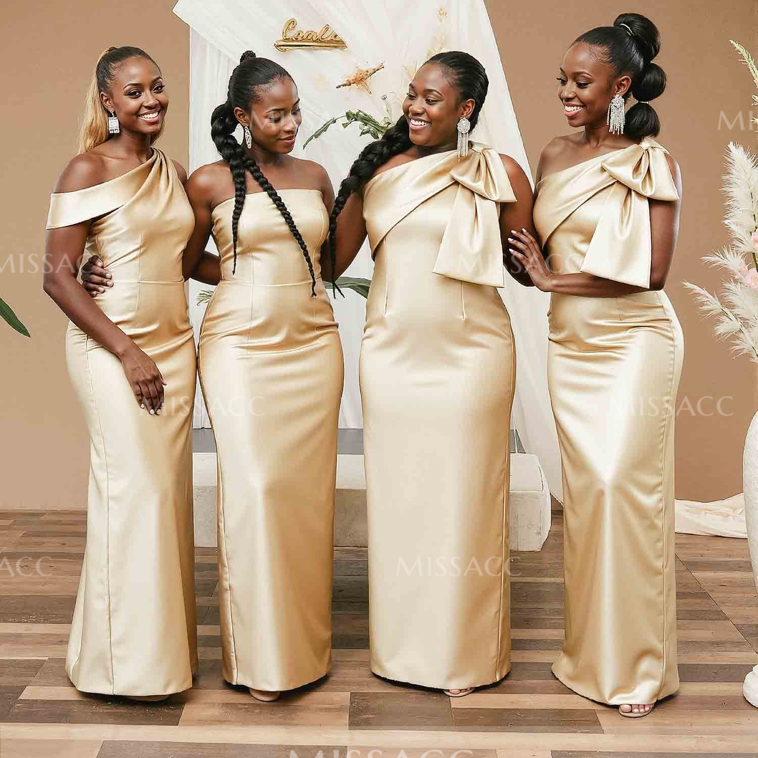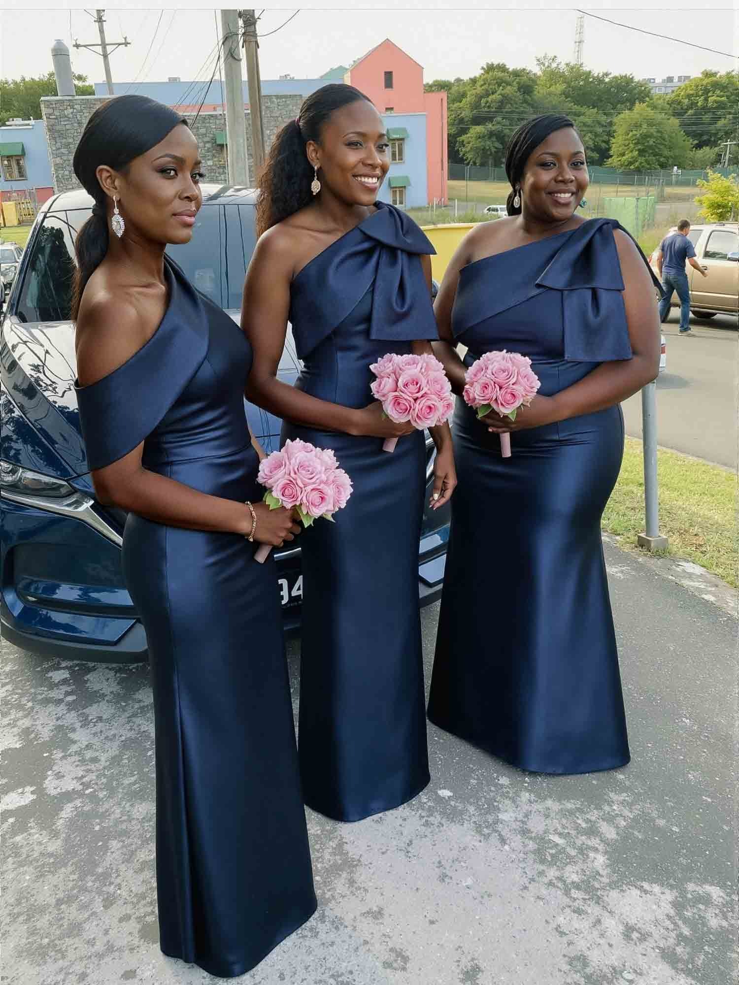 Sheath/Column One-Shoulder Satin Bridesmaid Dresses With Bow(s)