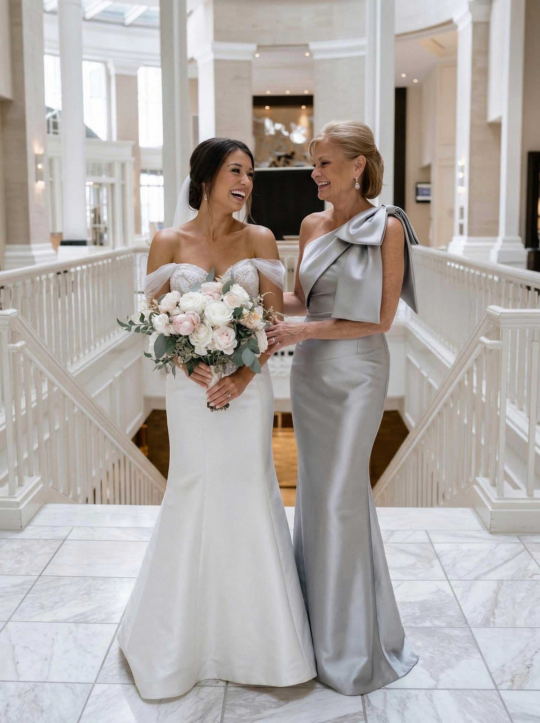Sheath/Column One-Shoulder Satin Mother Of The Bride Dresses With Bow(s)
