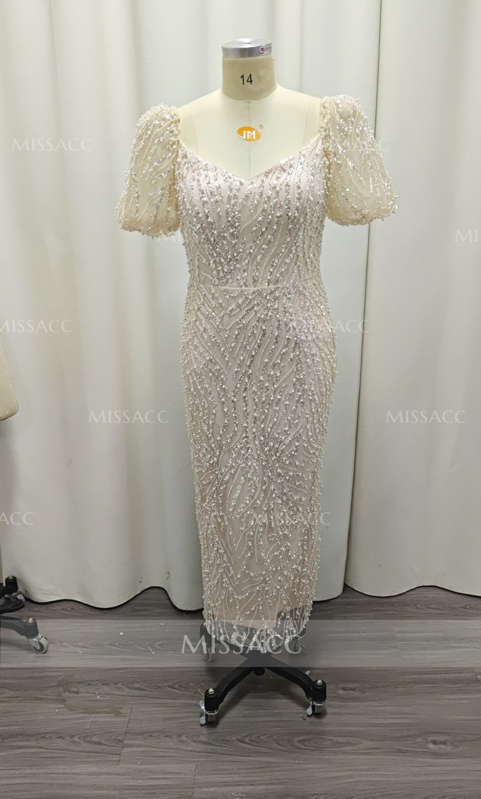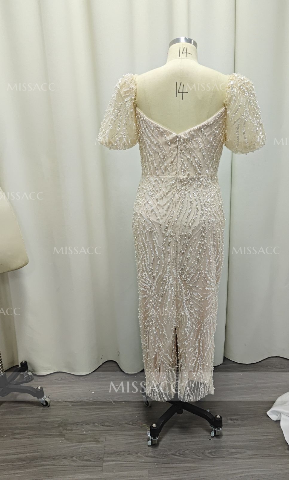 I'm absolutely in love with this! The ankle length is super elegant, and the short sleeves give just the right amount of coverage. The beading looks way more expensive than it actually is. Highly recommend!