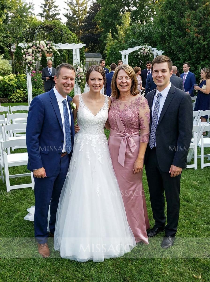 I ordered this dress for my daughter's wedding and I must say, it didn't disappoint. It looks sophisticated and classy. The lace is delicate and the satin shines just right. The fit is true to size, but I did have some issues with the zipper.