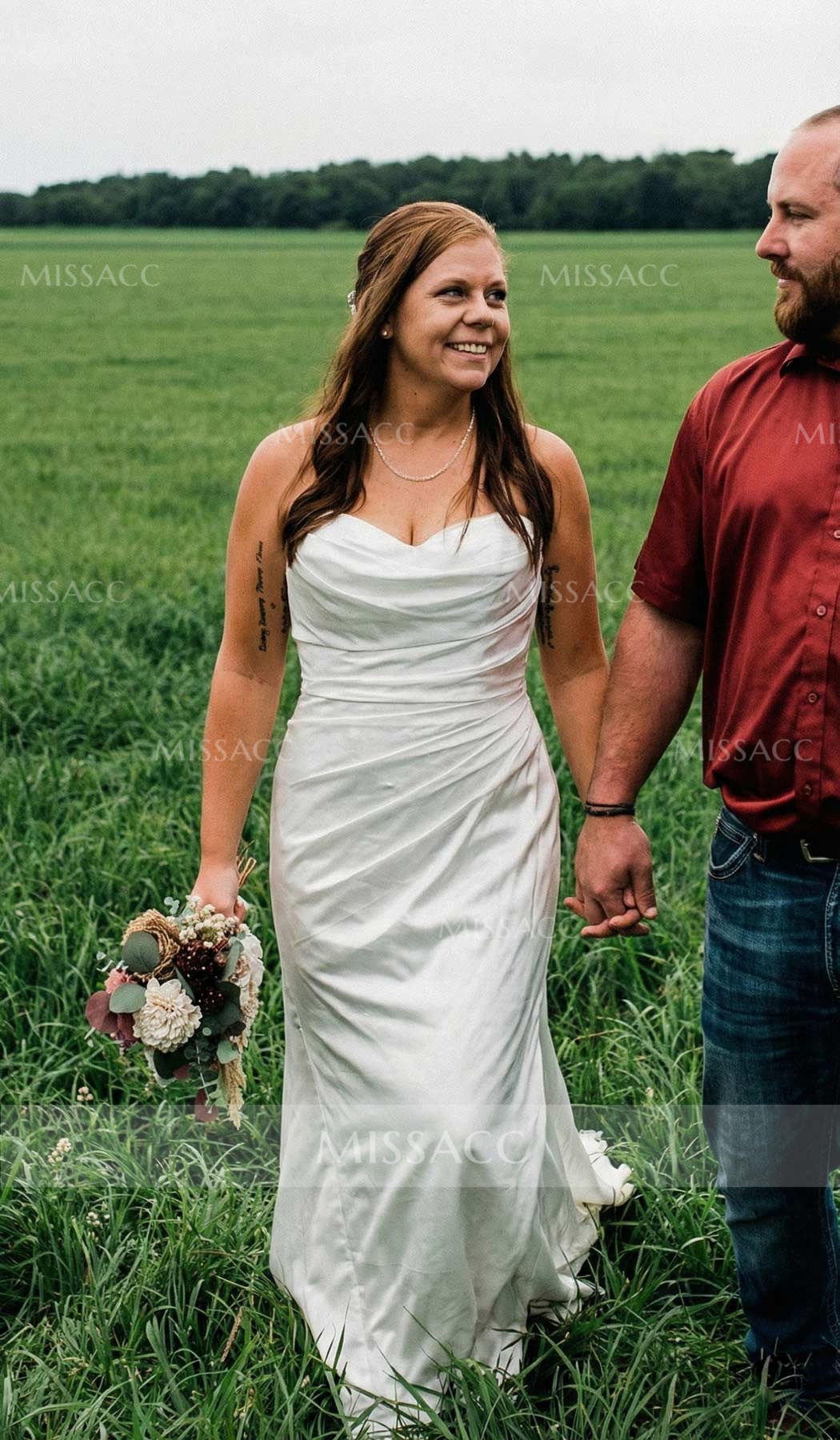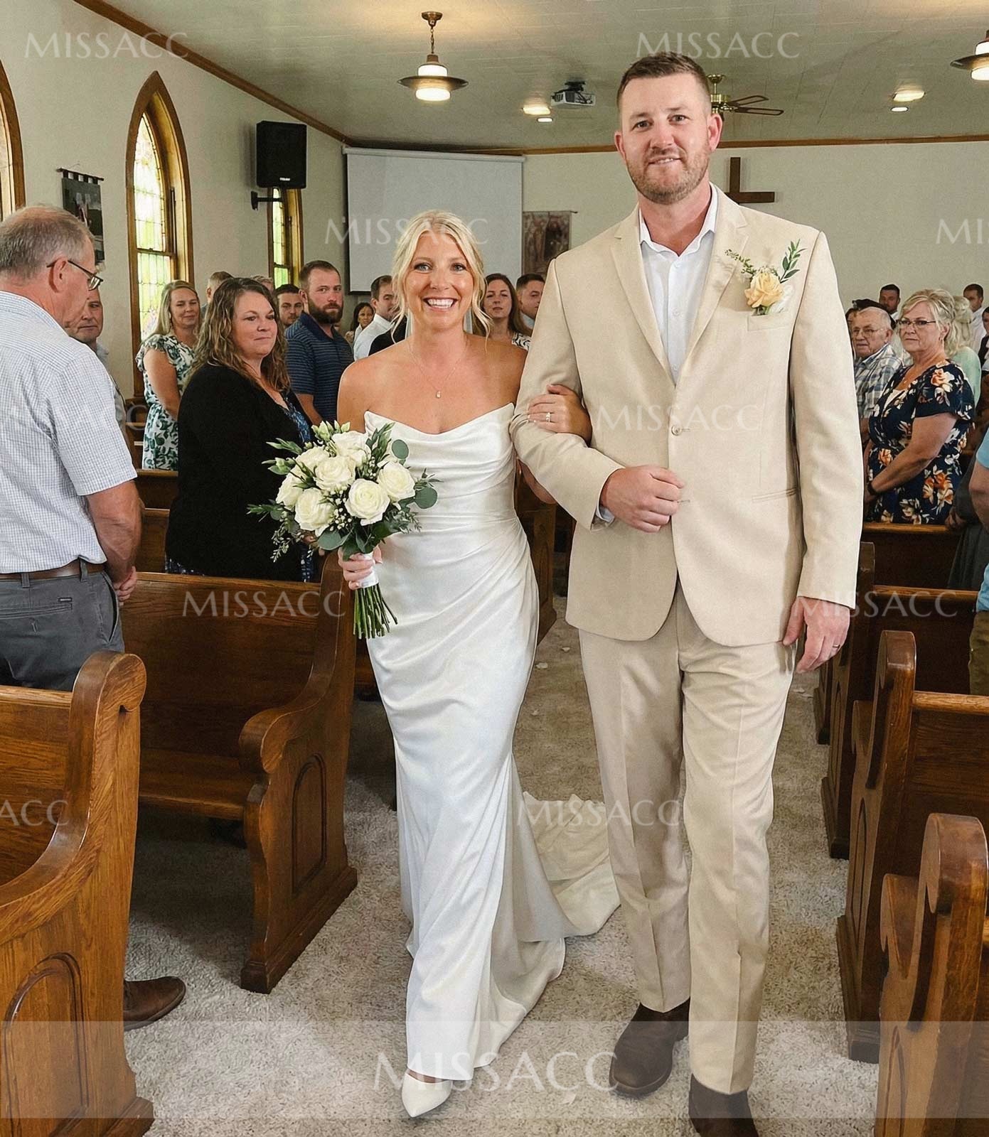 Just got this beautiful satin wedding dress and it's beyond my expectations! Looks exactly as pictured, feels so soft and luxurious. The mermaid cut are so flattering. Can't wait to wear it on my big day!
